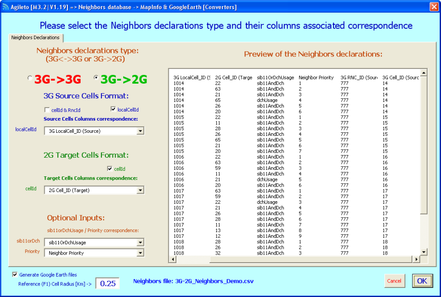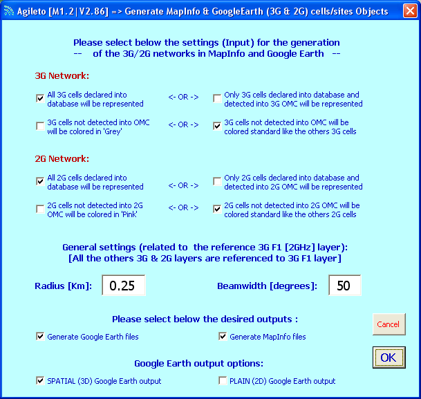 1.2) Generate MapInfo & GoogleEarth (3G & 2G) cells/sites objects