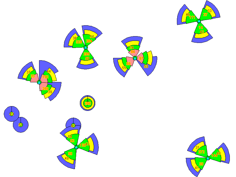 Below is represented the case B (KPI is CS_RB_Setup_Success) => Cells colors up to their KPIs values & cells radius are constant!