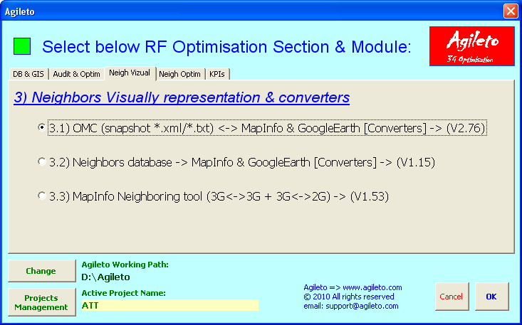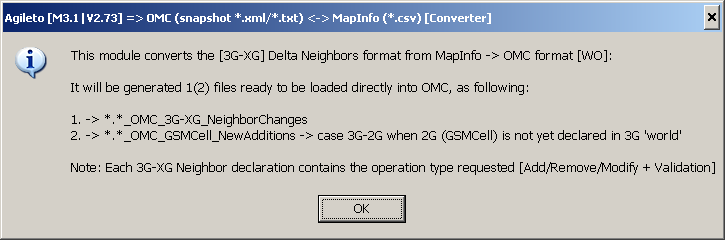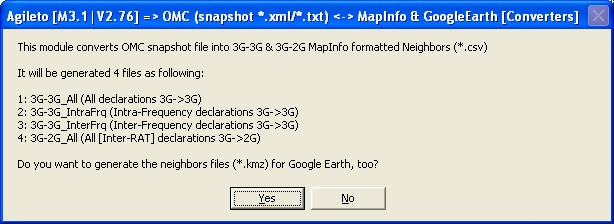 3.1) OMC (snapshot *.xml/*.txt) <-> MapInfo (*.csv) and Google Earth (*.kmz) converters