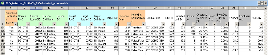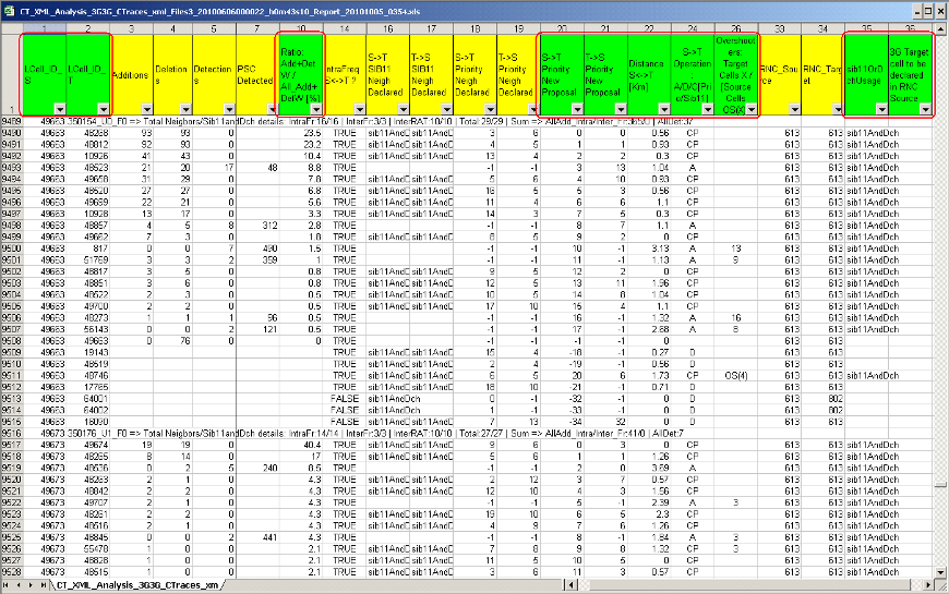 Example of 3G-3G Call Trace Neighbors Optimisation analysis report:
