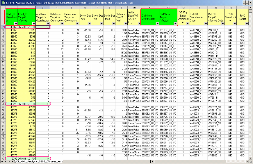 Example of 3G Call Trace analysis Over-Shooters report: