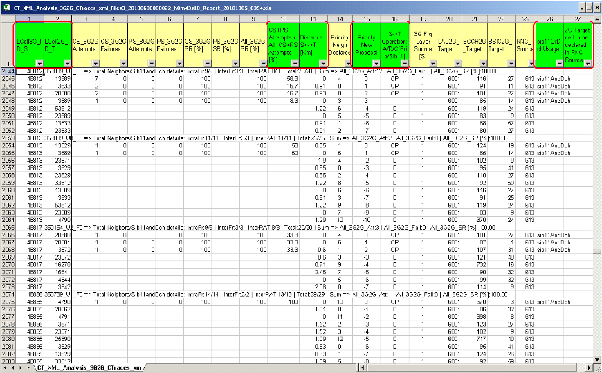 Example of 3G-2G Call Trace Neighbors Optimisation analysis report: