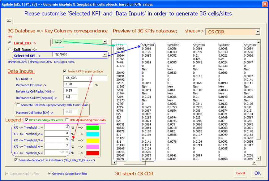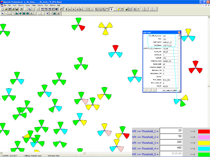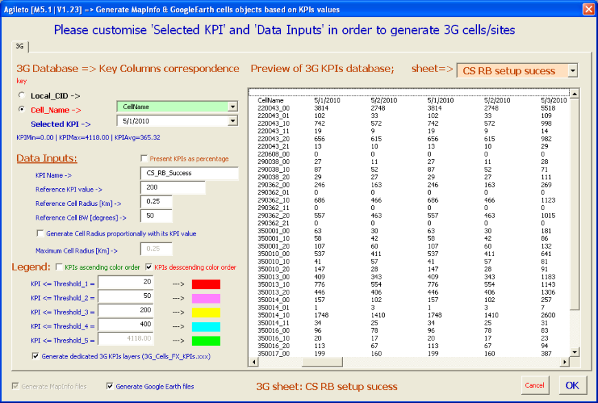 5.1) Generate MapInfo & GoogleEarth cells/sites objects based on KPIs values